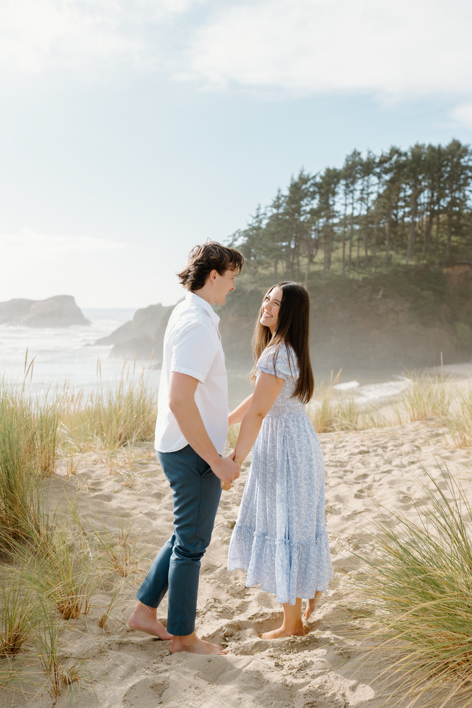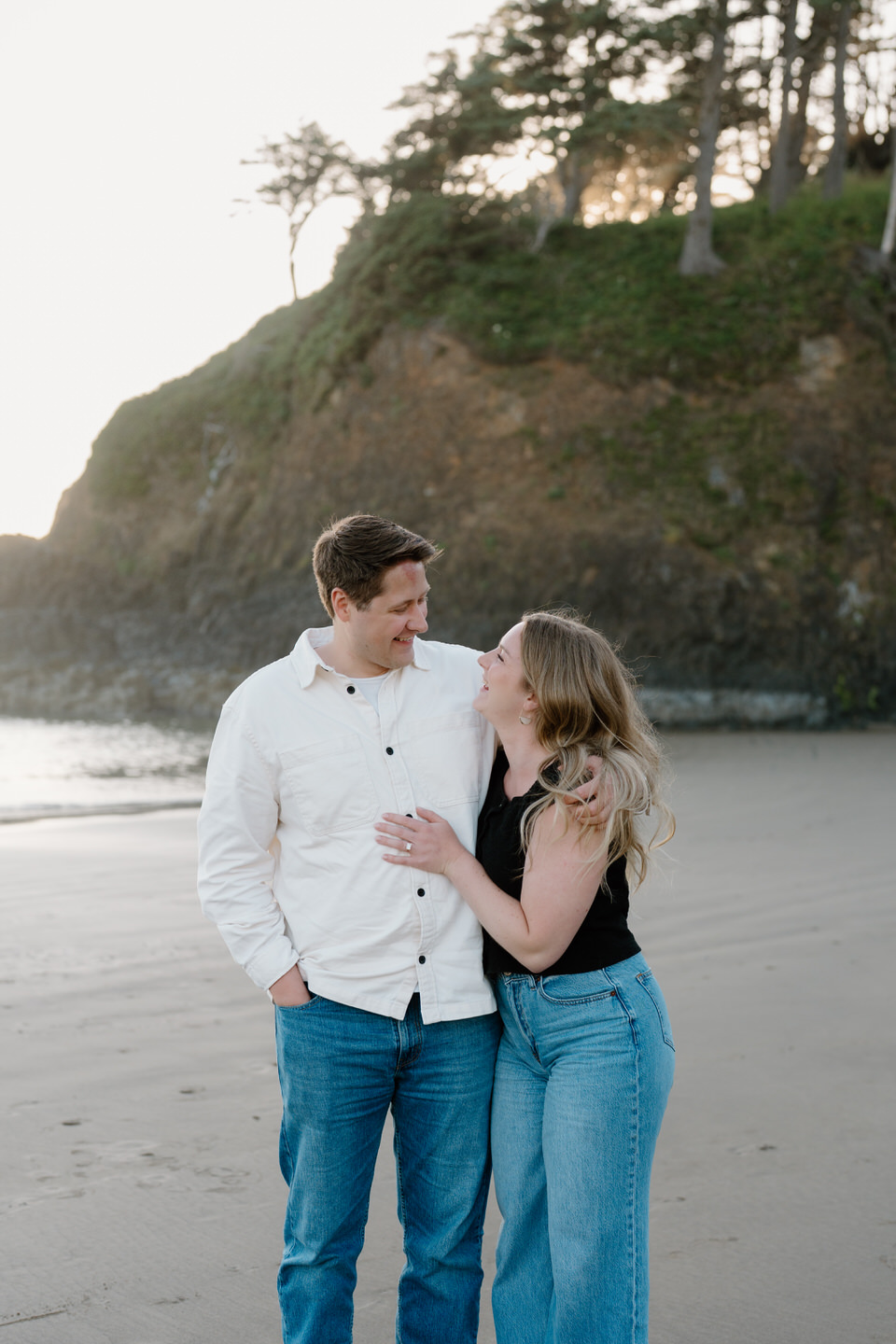 The coast is one of the dreamiest Oregon engagement photo locations I can imagine. Firstly, it is a beautiful destination to make a trip out of. Secondly, as the lighting changes from harsh, mid-day sun, to golden hour, then to soft blue hour light, the photos change so much to provide variety.