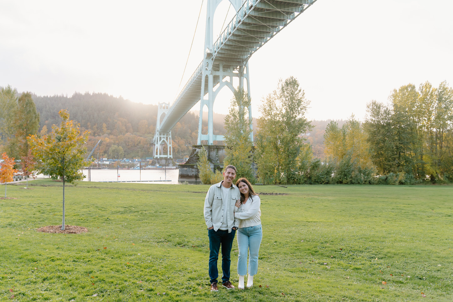 There is parking all around Cathedral Park, including a small gravel lot right under the St. Johns Bridge and tons of surrounding neighborhood parking. It can be very busy here, and sometimes there are wedding ceremonies happening, but it is a large park so we can find our own little corner. I love that there is also waterfront access with a dock we can head to for some more photos.